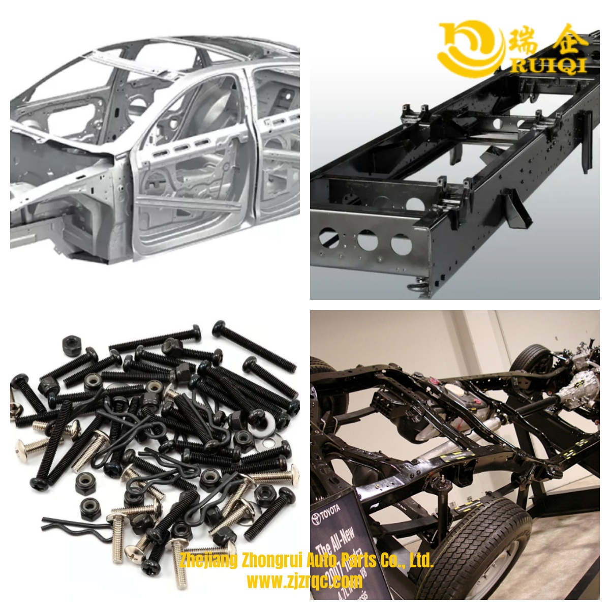 Riveting: Riveting er relativt mindre vanlig i chassiset og brukes hovedsakelig til å koble til tynnplate-komponenter, for eksempel forbindelsen mellom kroppen og chassiset. Riveting kan gi høy tilkoblingsstyrke, men er ikke lett å demontere.